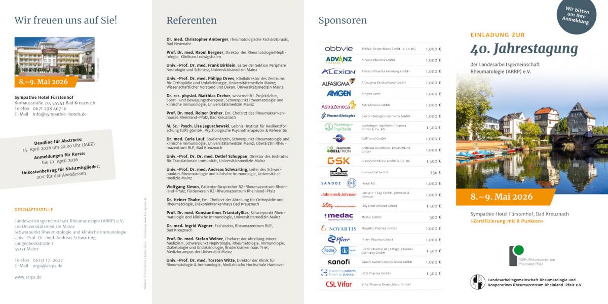 40. Jahrestagung der Landesarbeitsgemeinschaft Rheumatologie (ARRP) e.V.